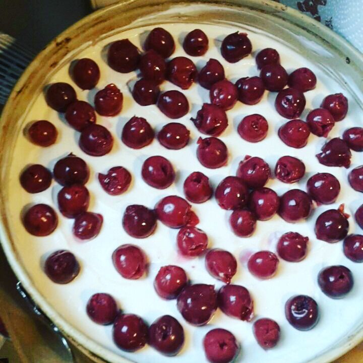✔Dann gut abgetropften Kirschen darauf verteilen .