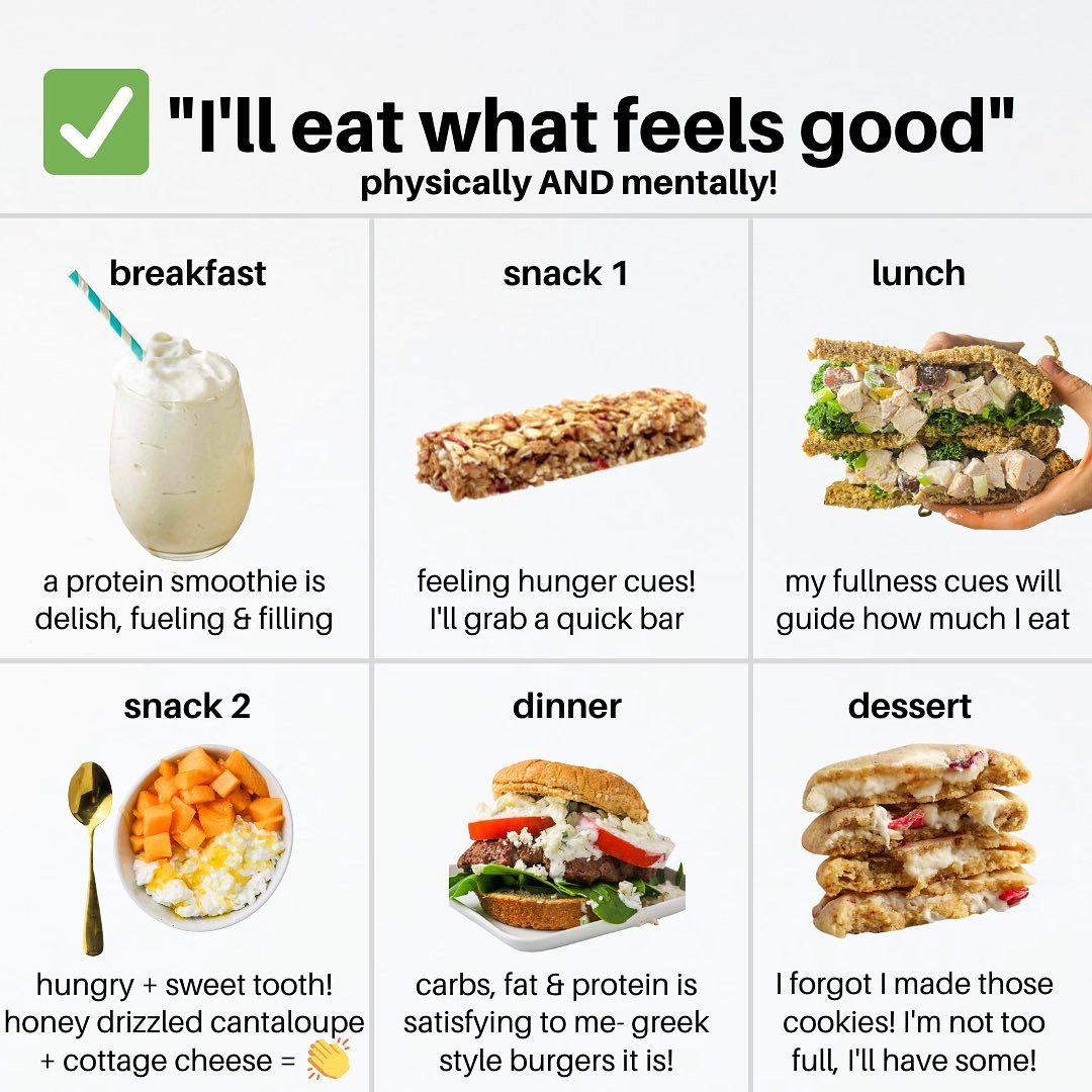So this week ask yourself this ➡️ “What would make me feel good both mentally and physically?” Take both of those things into consideration as you decide what to eat for the week. If you’re a member of @the_socieaty the recipes from the slide with the ✅ are all from our most recent sample meal plan!