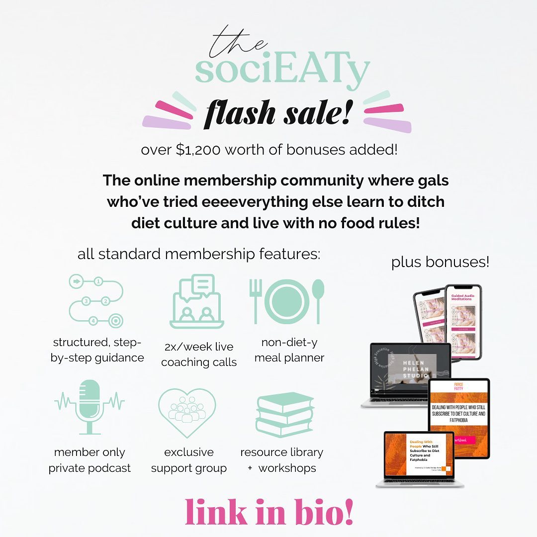 Not yet a member but you want to learn how to eat intuitively without endless eating and bottomless binges? Then get excited! ? This week only The SociEATy (which has EvErYtHiNg you need to become an intuitive eater) is doing a little flash sale with some seriously great bonuses added! Link in bio to check them out and join us!