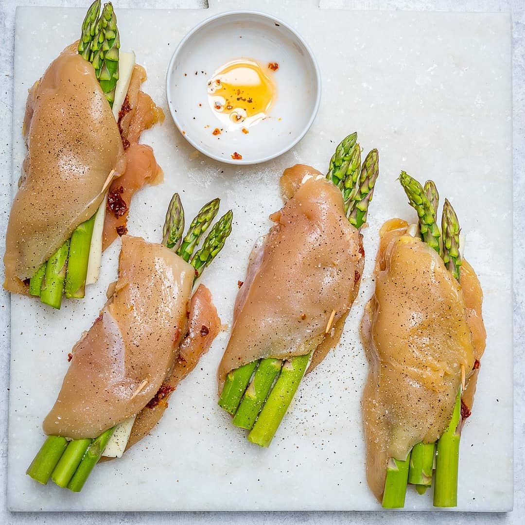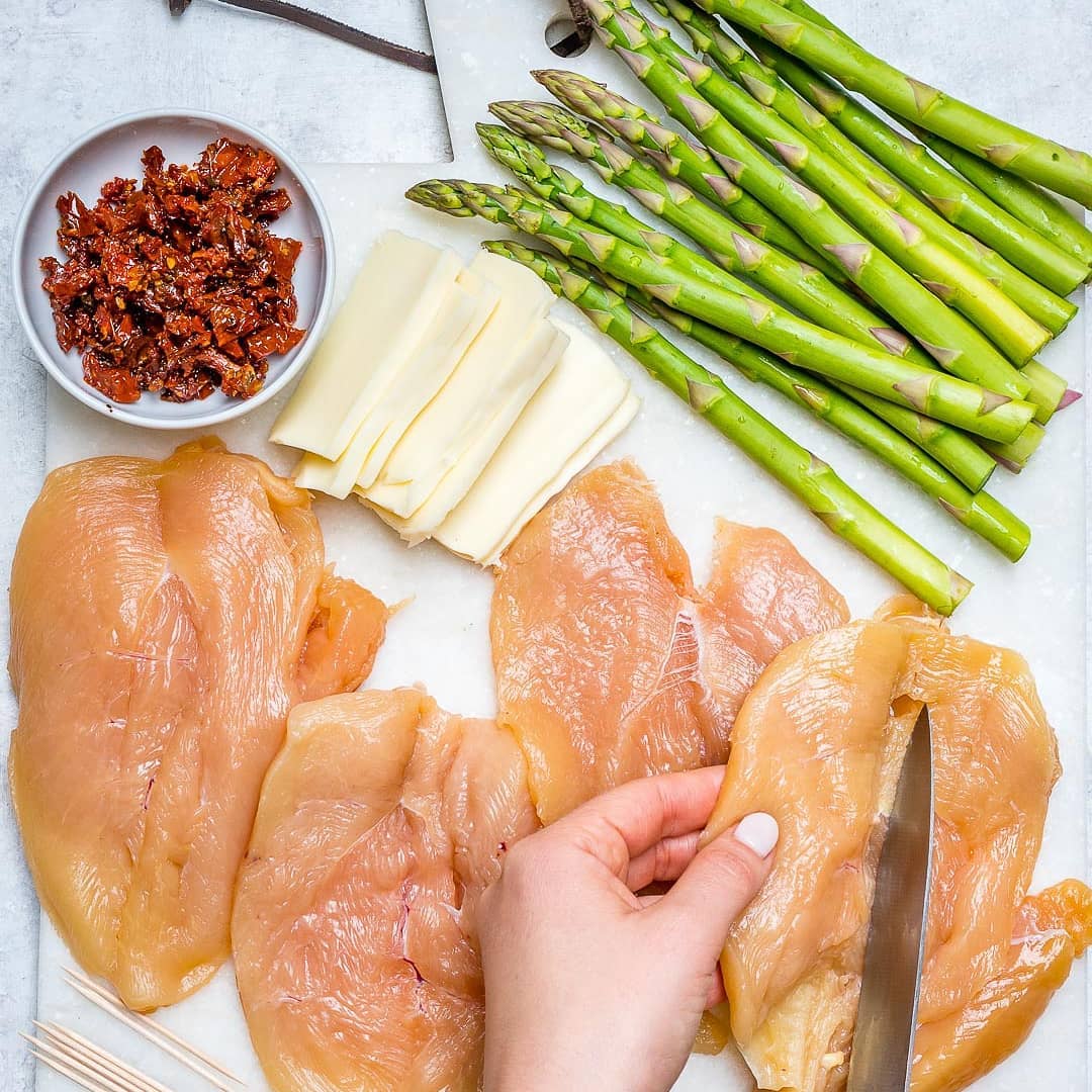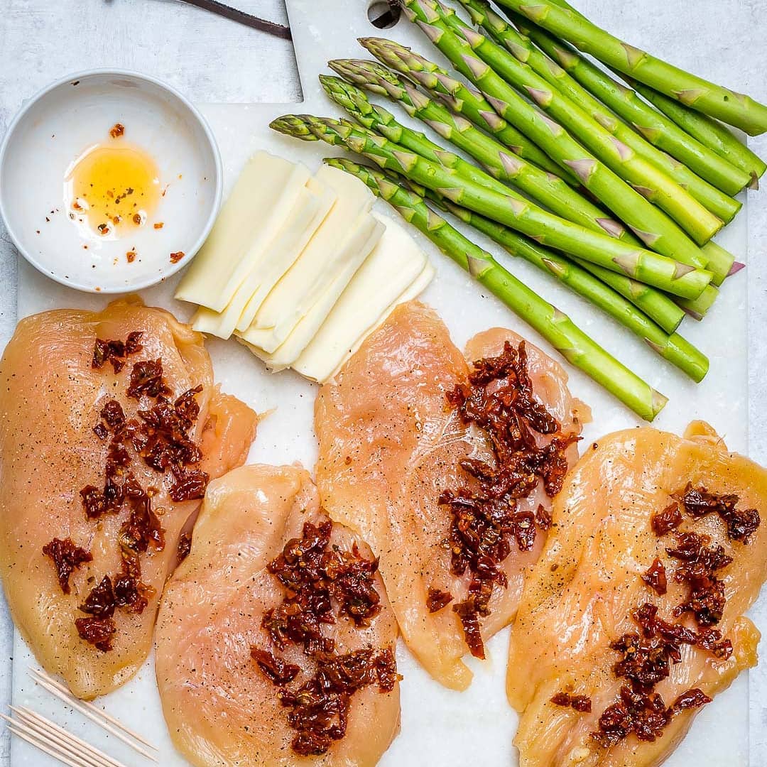 Eat Clean: Asparagus & Sun-dried Tomato Stuffed Chicken Skillet!