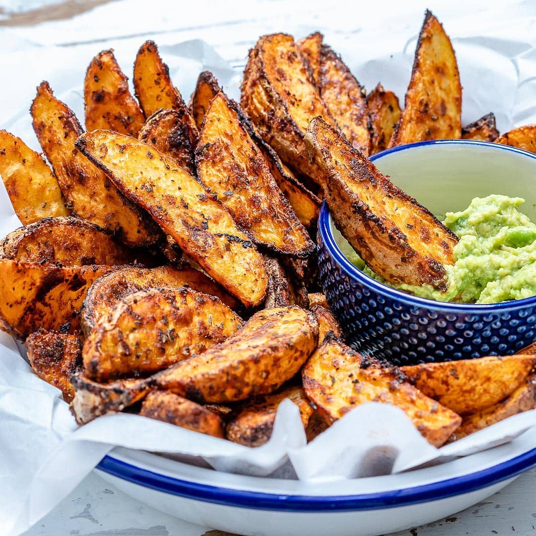 Baked Smoky Potato Wedges + Limey Avo Mash ?? {Everytime I post potatoes, someone comments “potatoes aren’t healthy” ? I’m happy to know that in fact – potatoes are REAL food, and a nutrient dense snack option! Treat them like a treat! Don’t overdo it??? !