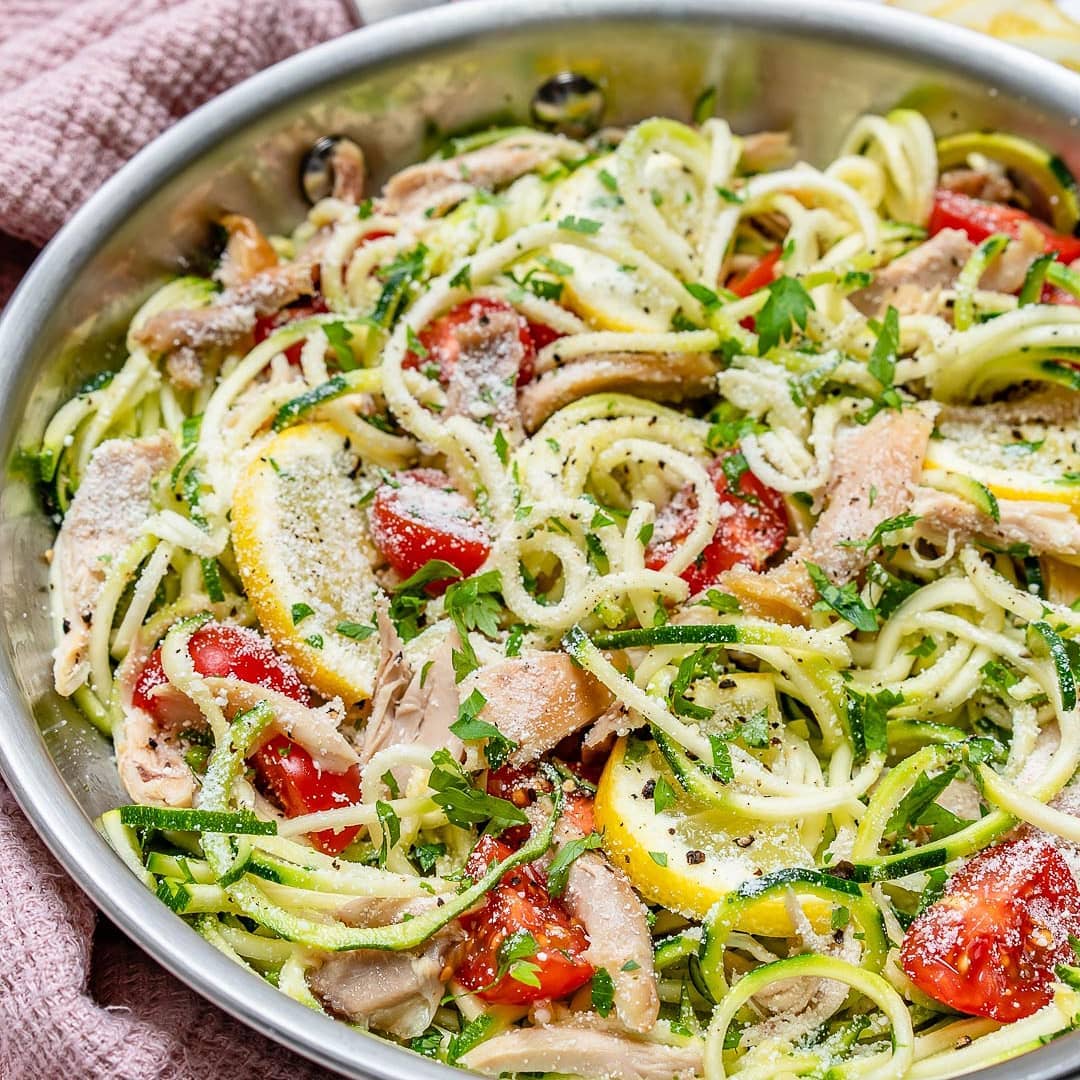 Garlic-Butter Lemony Chicken Zoodles OK..Real Talk. You see us mentioning the us…