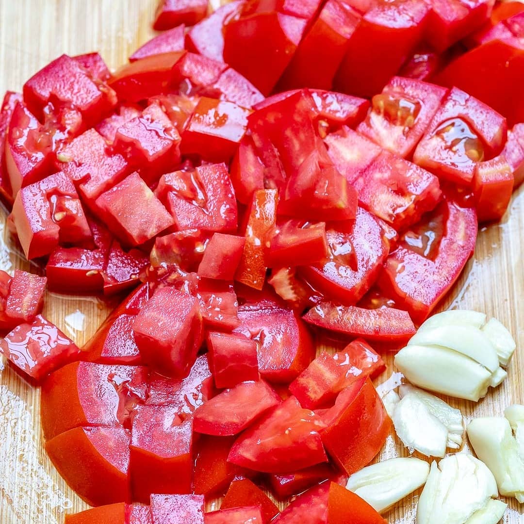 6 ripe roma tomatoes, chopped and lightly sprinkled in sea salt