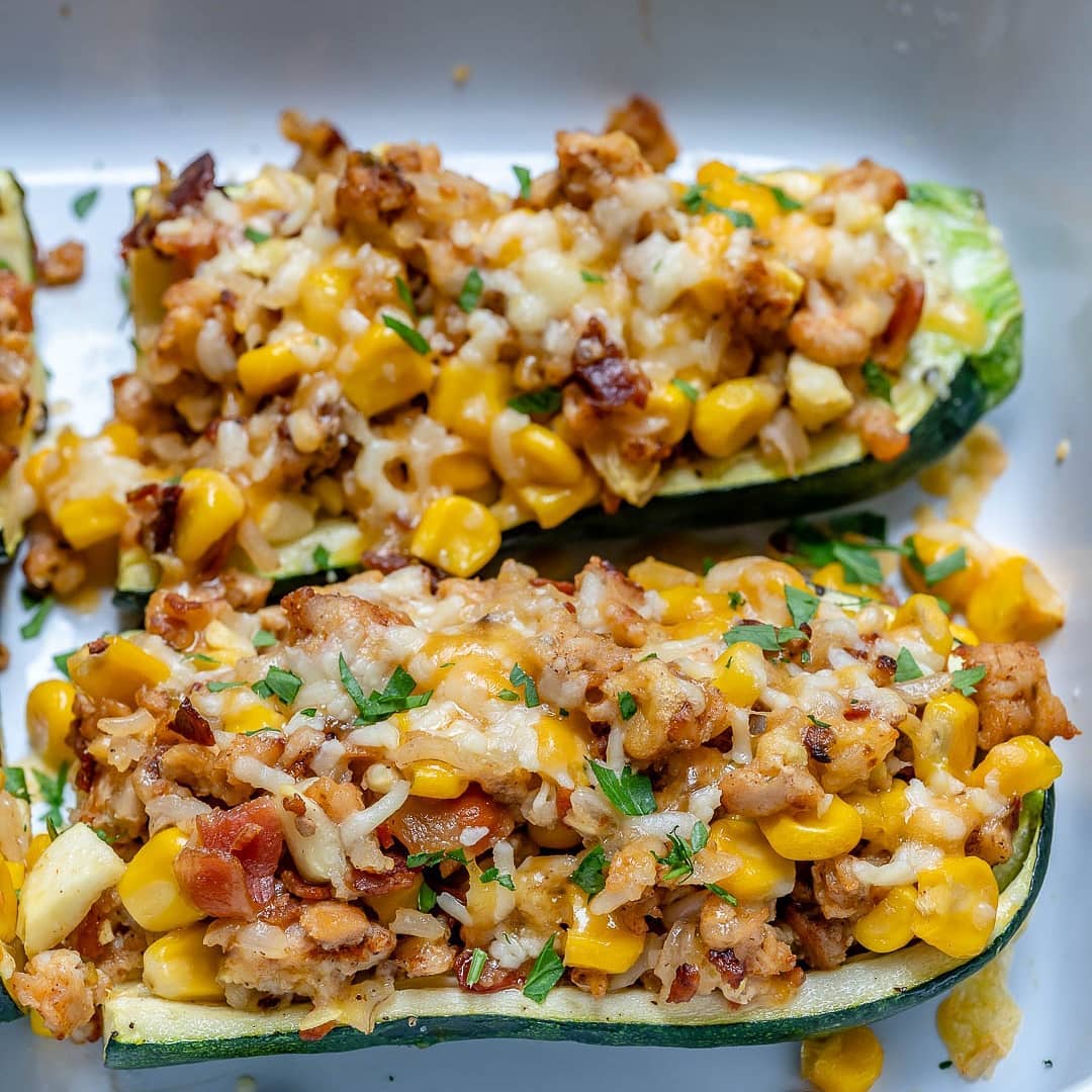 Carefully spoon this mixture into zucchini boats then top with remaining cheese.