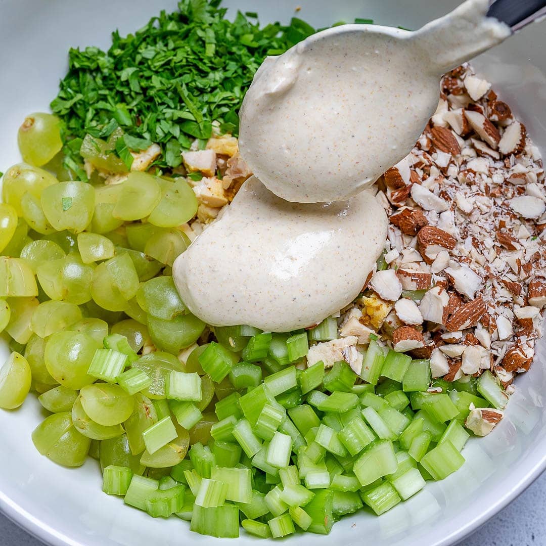 This chicken salad stays great in the fridge for about a day or so, best enjoyed within 24 hours.