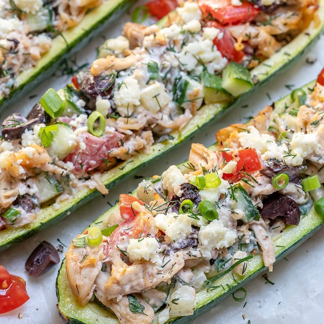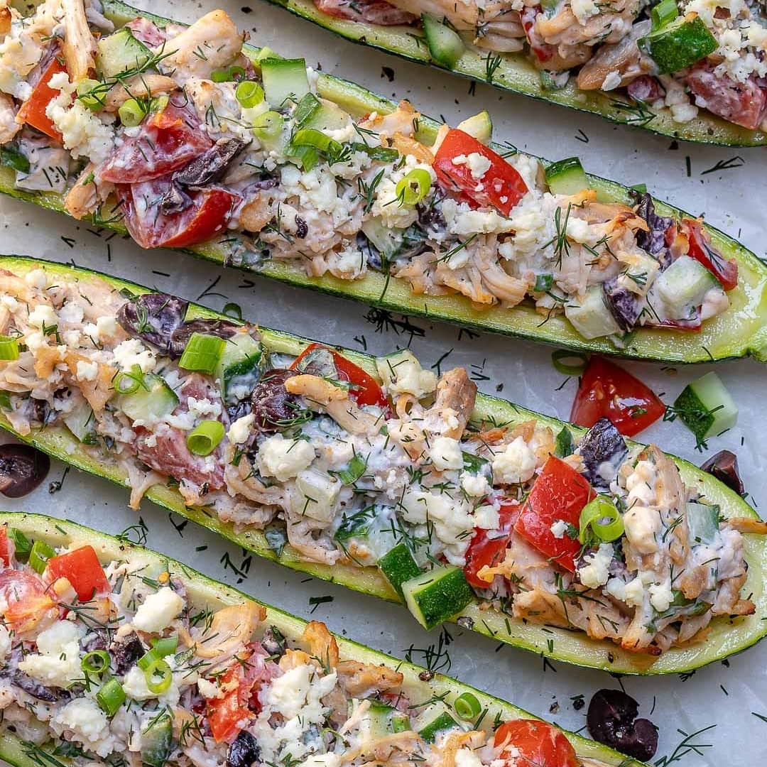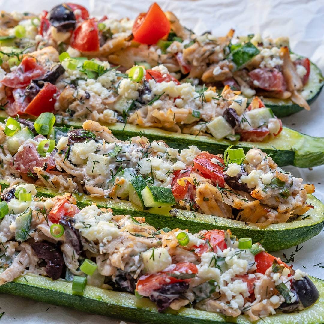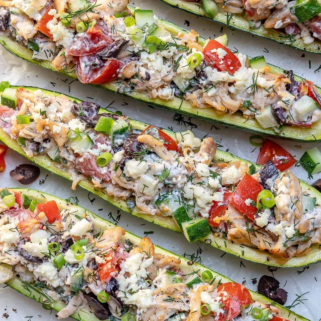 {NEW} Greek Inspired Chicken Zucchini Boats ????
