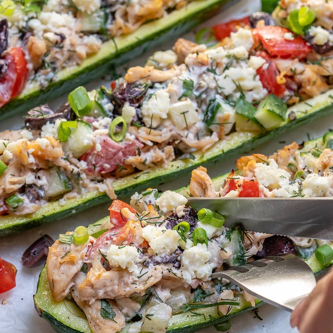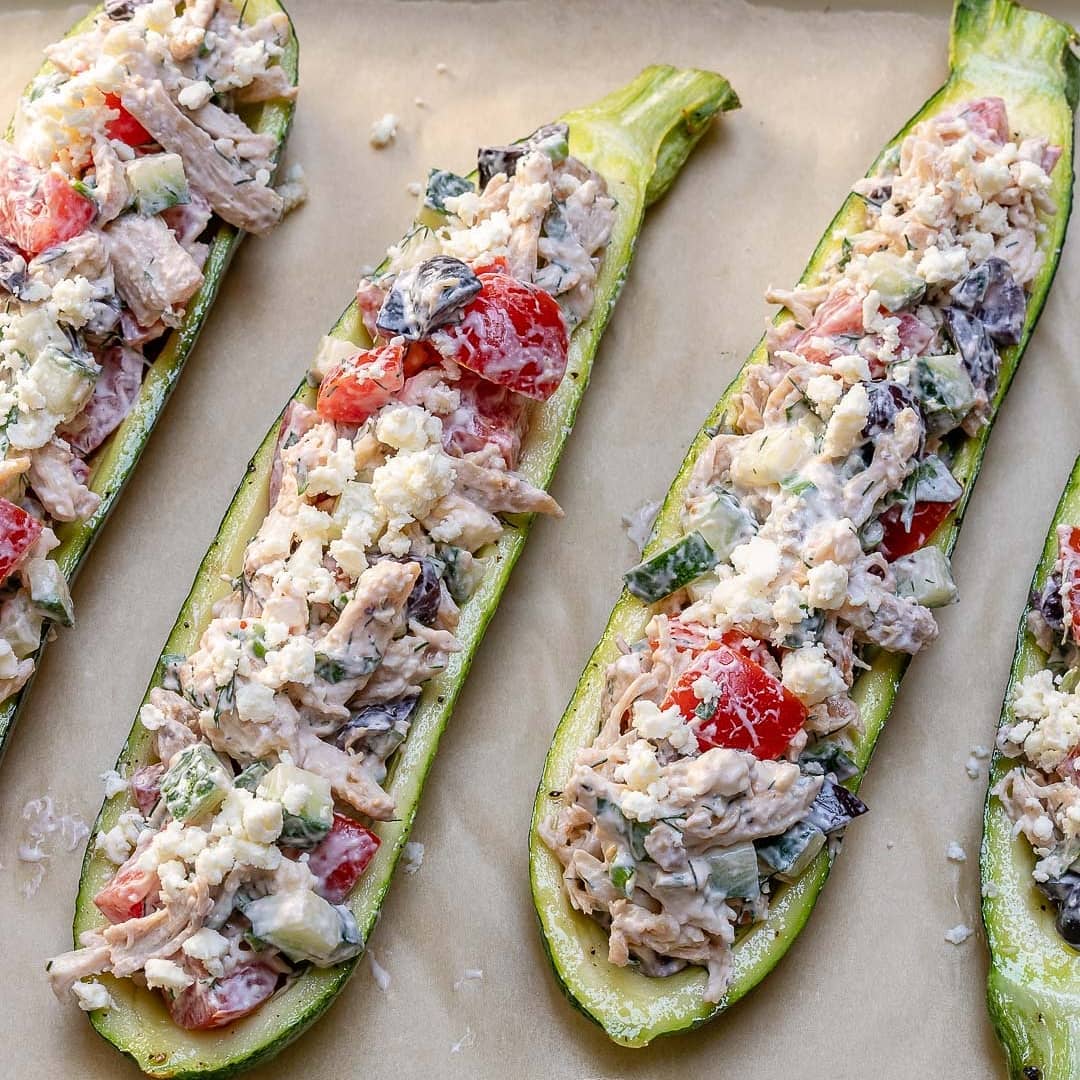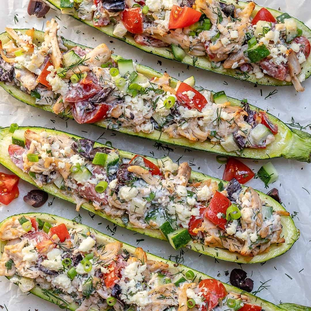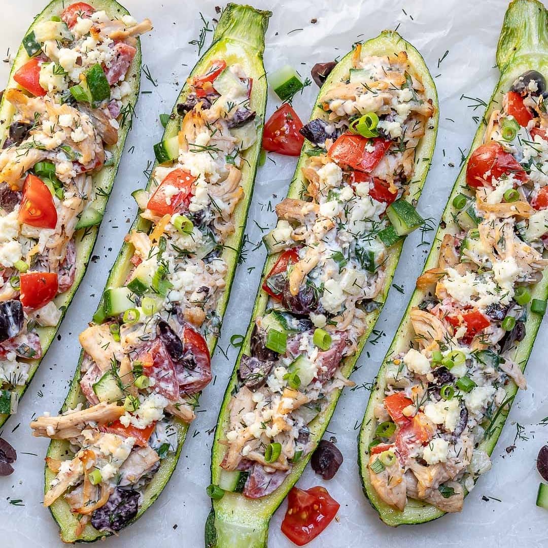 {NEW} Greek Inspired Chicken Zucchini Boats ????