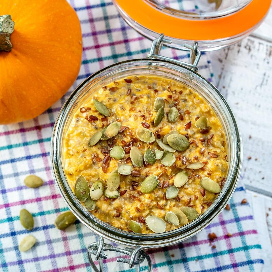 {NEW} Pumpkin Pie Overnight Oats ??? Raise your hand if you’re joining me in eating Pumpkin Everything these next few months?!! ?♀️ Pumpkin is super filling and satisfying, thanks to its high fiber content, but it’s also low-calorie. So, it’ll fill you up, with high nutrients = energy fuel!