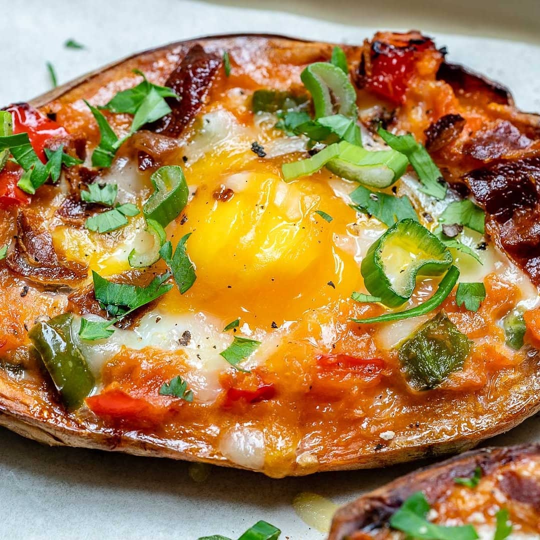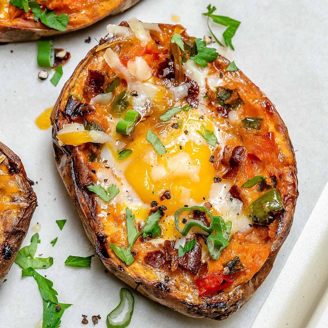 {NEW} Twice Baked Stuffed Sweet Potatoes with Bacon and Eggs #HappyWeekend . Th…