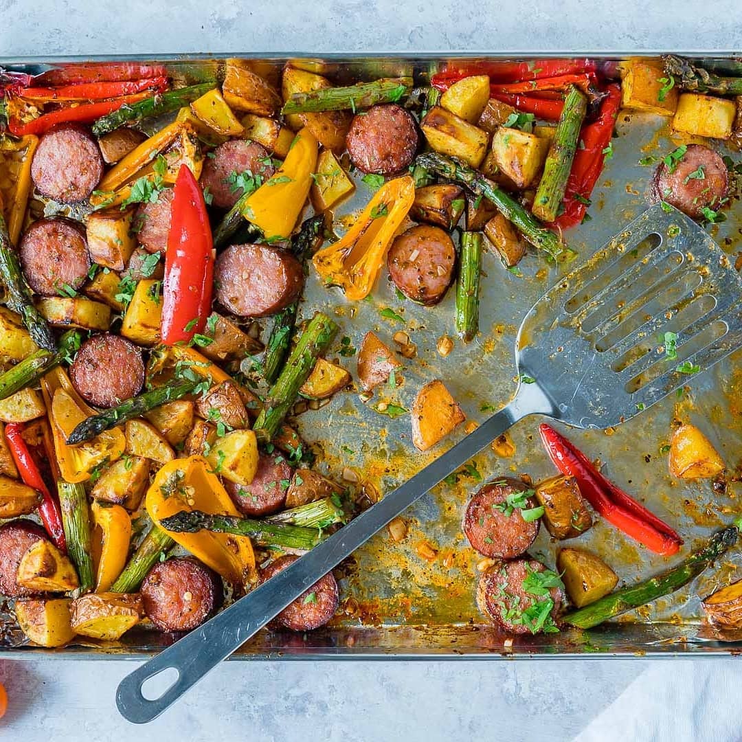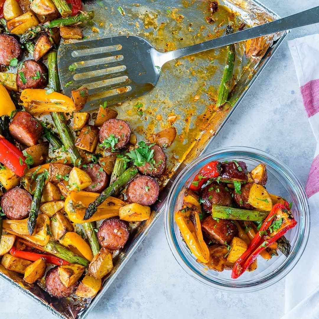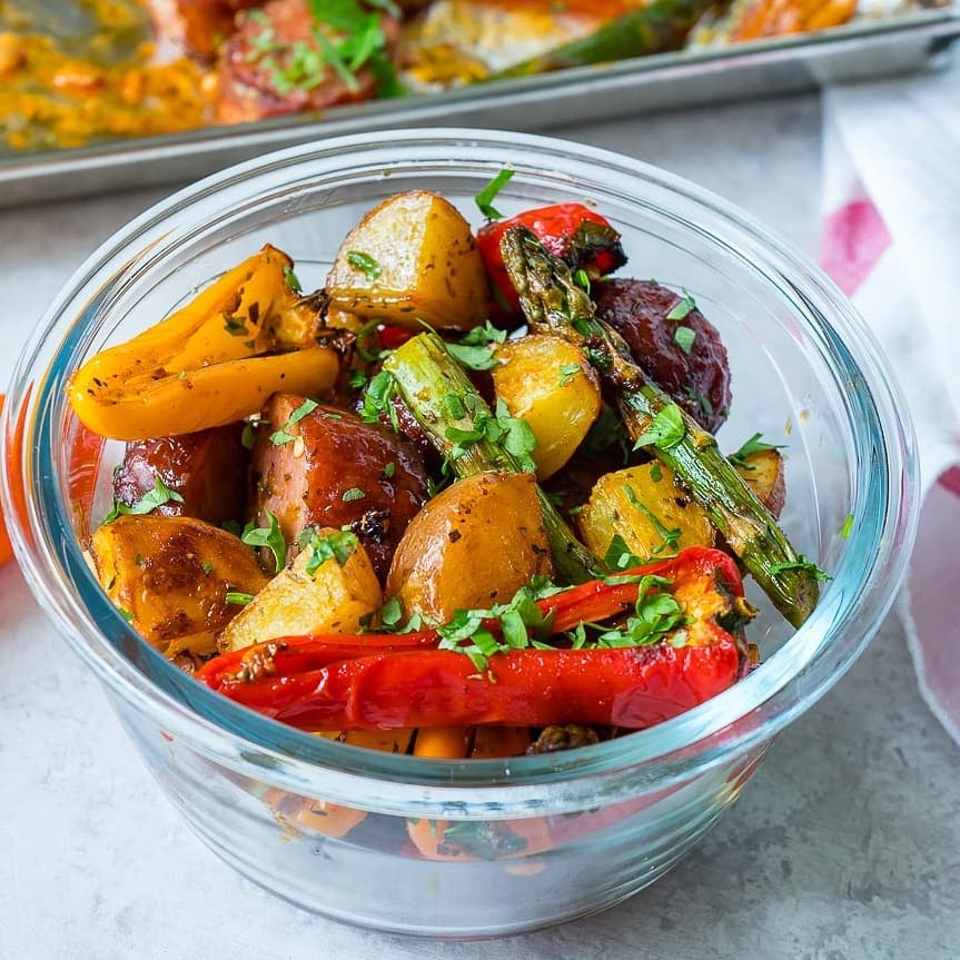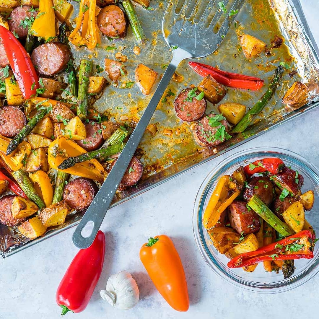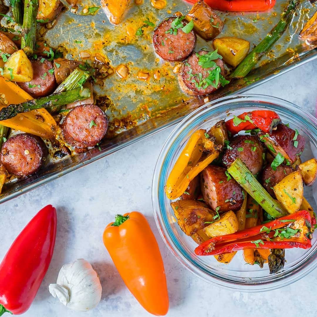 “Oh my! Made this last night for one of my prep meals and it is so delicious! I used chicken sausage that I bought from Costco. I used the new potatoes because my sweet potatoes had gone bad. Every bite tasted so good! Thanks for the recipe, Rachel and this will be a keeper!”