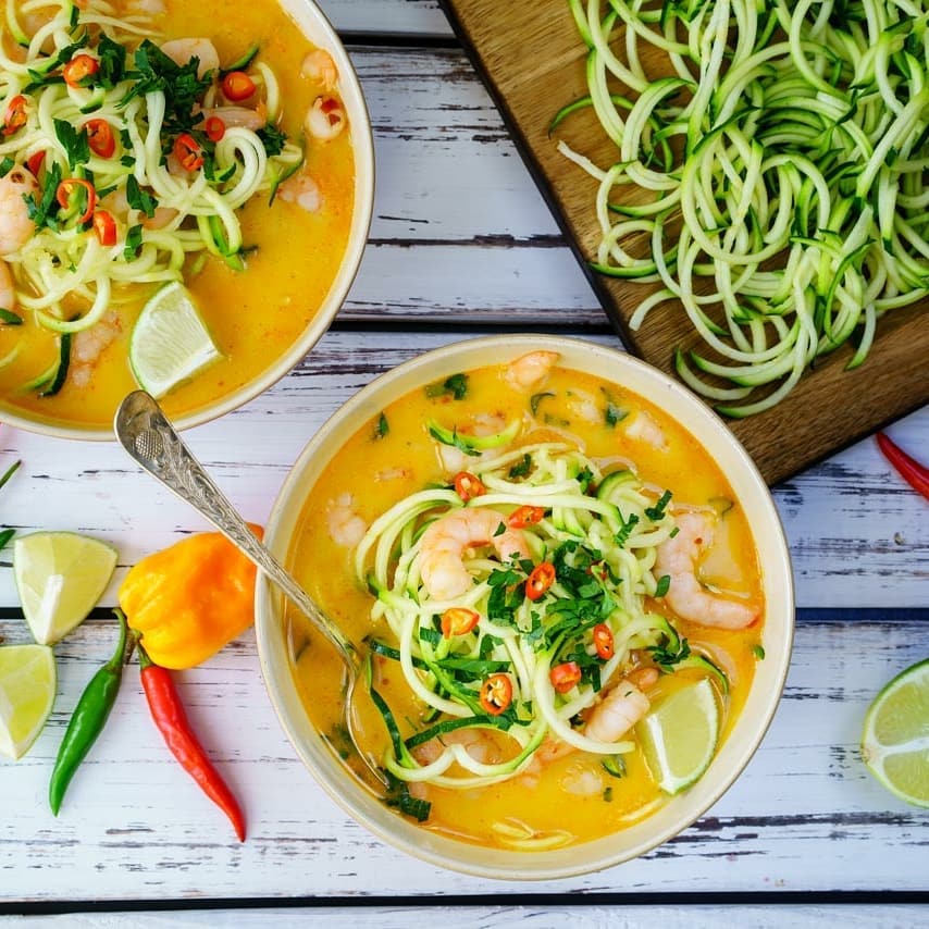 Spicy Shrimp + Zucchini Noodle Soup {This soup is ready in just a few minutes……
