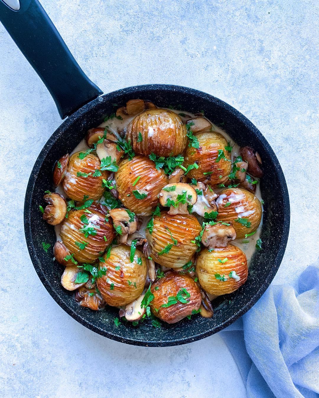 A little bit of creamy potato indulgence for me with this hassleback potato in creamy mushroom sauce. To make it you need: