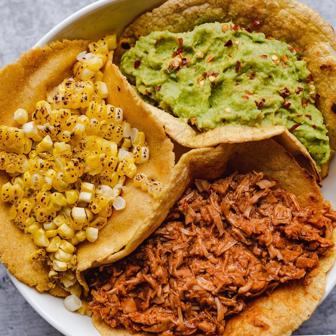 BBQ jackfruit with homemade corn tortillas, easy guacamole and roasted Recipe: …