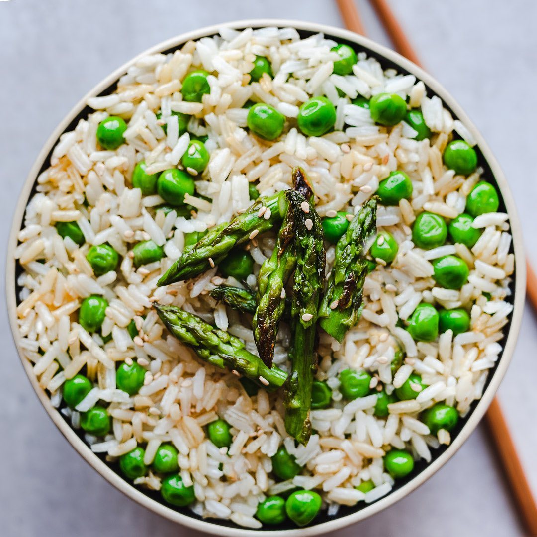 Charred Asparagus + green pea fried riceI find fried rice pictures very challeng…
