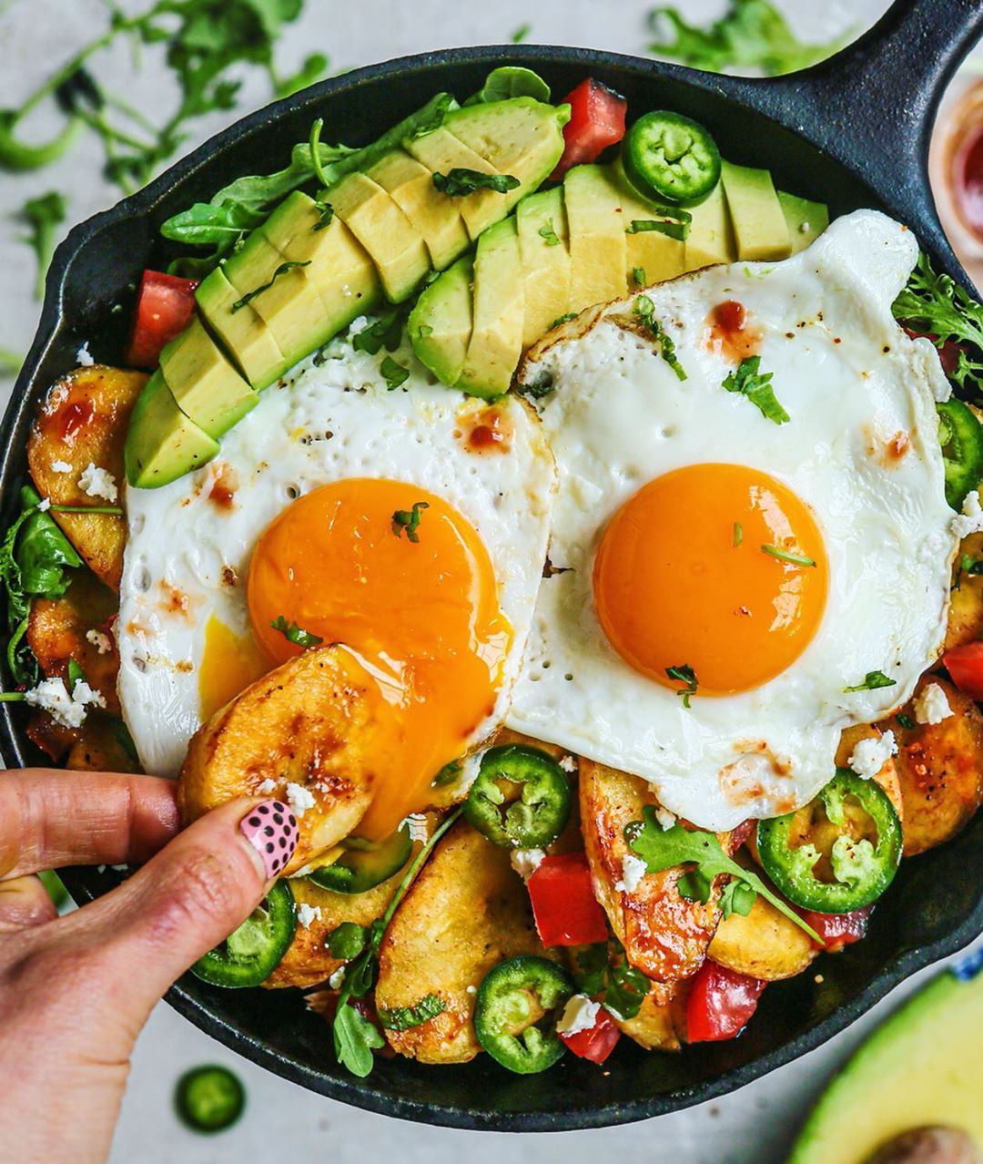 FACE PLANTAINING into this PALEO CHIPOTLE PLANTAIN FIESTA “NACHO” SKILLET! (Swipe for that yolk shot!) Happy Wednesday loves! Though I am not eating this right now, if you caught my stories I’m devouring a seafood cobb salad, I am still dreaming of it! Made a BUNCH of air fried plantains the other day (we still have leftovers!) and my boyfriend and I split this for lunch (well…sorta…I think I ate 72% of it ?) IT WAS DELICIOUS. You could easily just use baked or fried plantains as well. Hope you’re all having a fabulous day! Mine has been a little rocky to be honest, but making the best of it. Sometimes adulting is just a pain in the @$$ am I right?! Such is life! Do you like plantains?