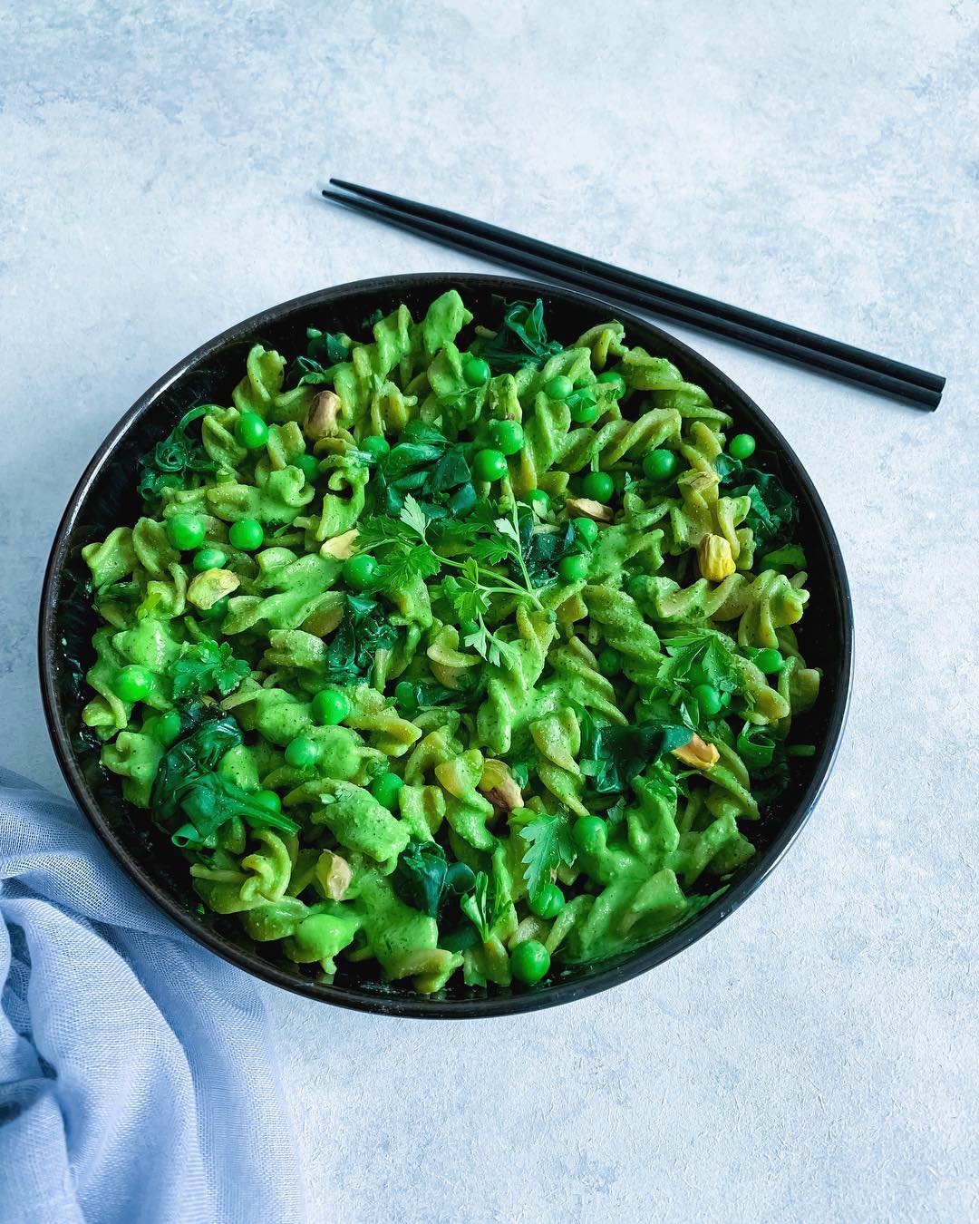 Green Monday’s is officially a thing?. This is practically a bowl of beans ?. I’ve made chickpea pasta with a creamy tofu and spinach sauce. I topped with wilted spinach, peas and pistachios ?.