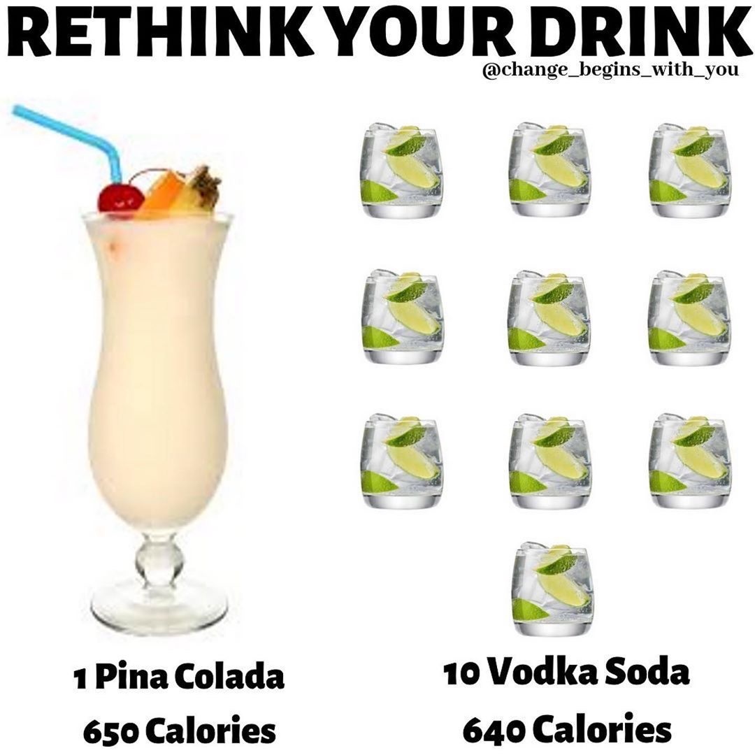 The average serve of a cocktail is generally 200 calories and let’s be real who only has 1❓ Definitely not me ??♀️. You can still go out and enjoy your drinks ? but just get familiar with what your having.⠀