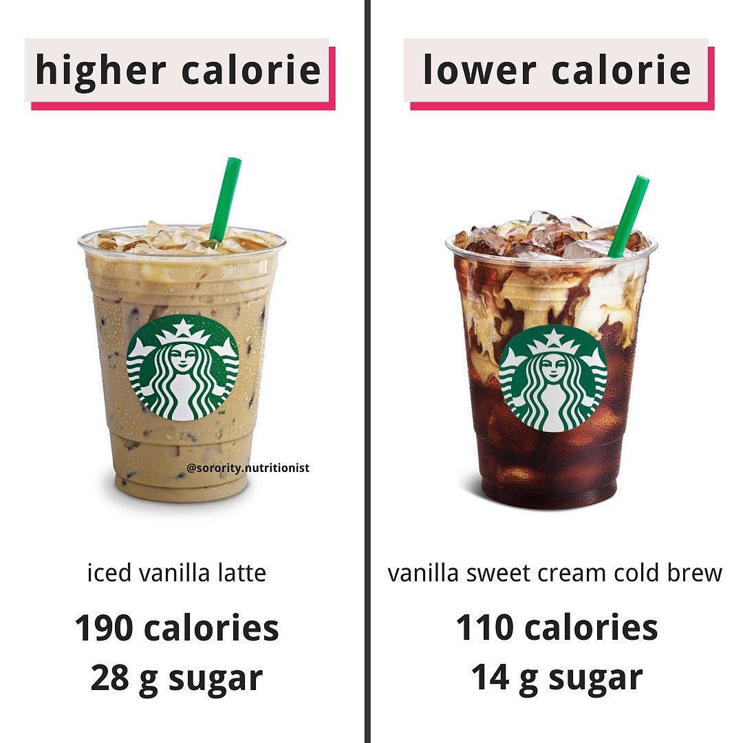 ??On the right is a grande vanilla sweet cream cold brew (110 calories)