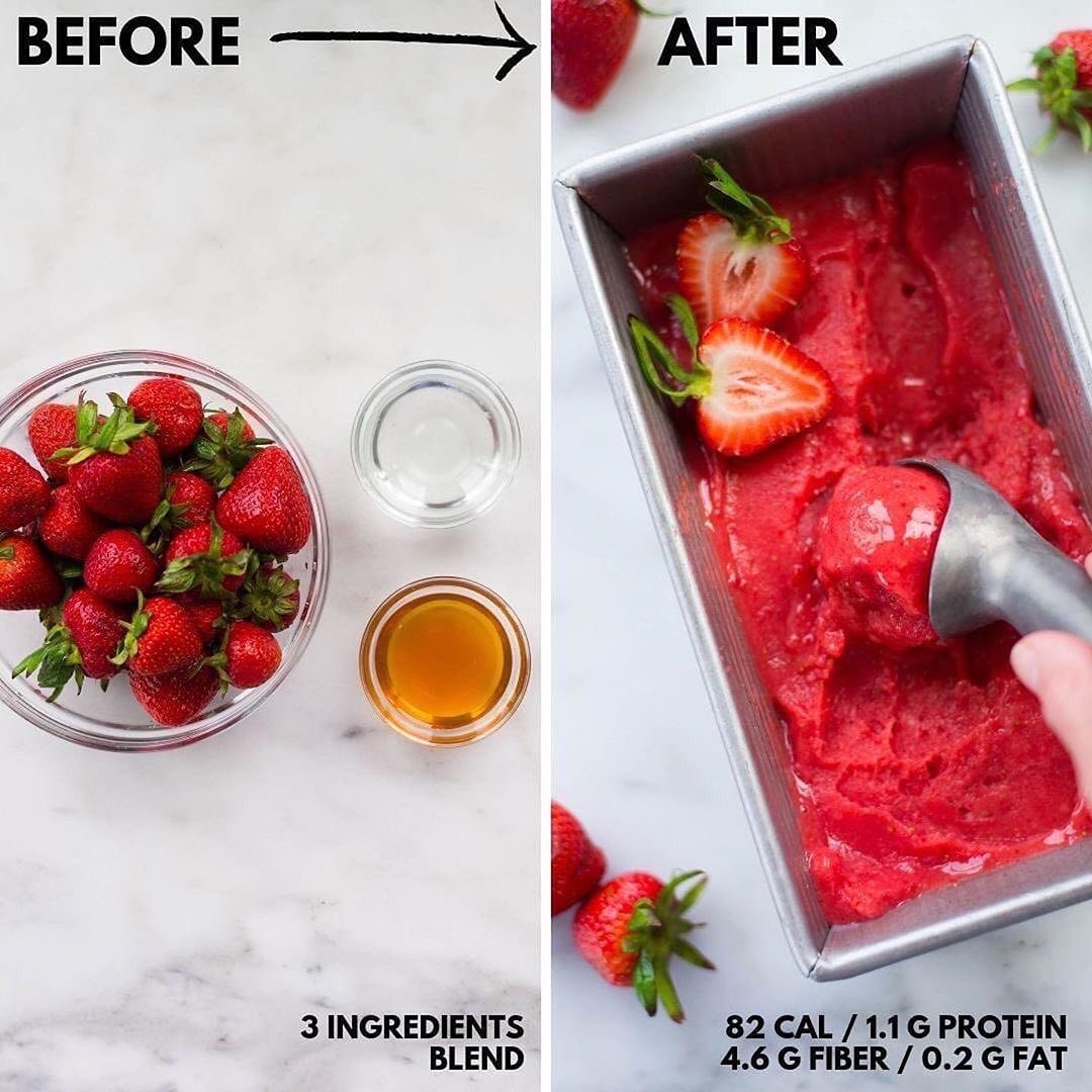 3 cups frozen strawberries blend with 2 tbsp raw honey and a splash of water or milk.