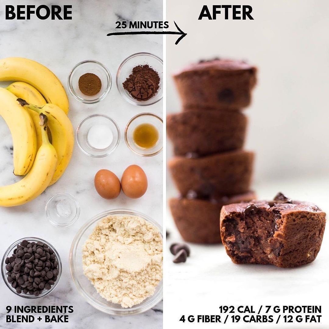 Blend 5 ? + 2 eggs + 1 tsp vanilla + 2 tbsp dark cocoa powder + 1/2 tsp cinnamon + 1 tsp bs + 1/8 tsp salt. In bowl, mix with 2 cups almond flour + 1 cup dark chocolate morsels. Grease muffin tin with coconut oil + put in mixture. Bake 20 minutes 350 degrees F.
