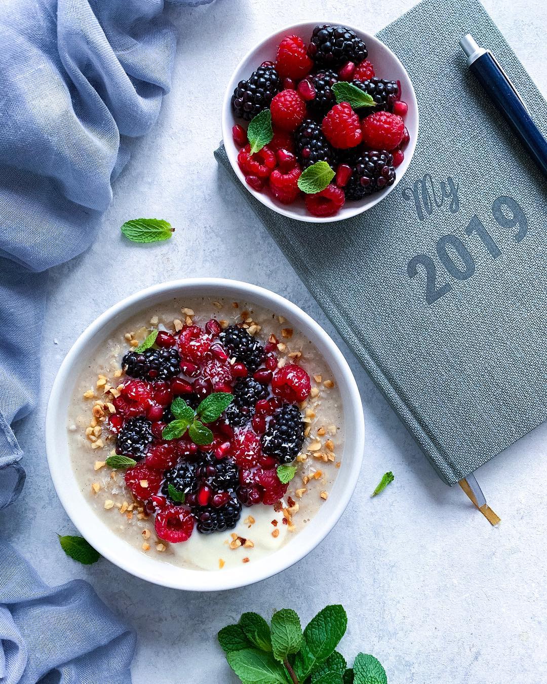 ? oatmeal with berries, pomegranate seeds and chopped hazelnuts. I showed how I make my oatmeal in my stories today. If you’re interested, head over there 🙂