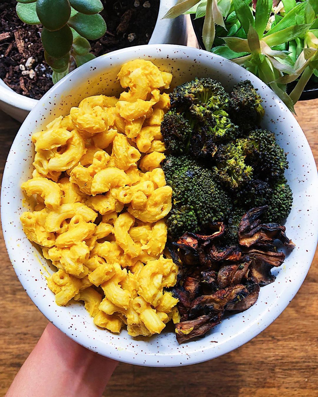 Cube 1 medium butternut squash and steam until fork tender (I don’t bother peeling, but that’s your choice!). Once steamed, blend with 1/2 cup nutritional yeast, 1 tsp onion powder, 1 tsp garlic powder, 1 tsp sriracha, a pinch of pepper, the juice of 1 lemon, 1 cup of veggie stock (plus more if needed) + 1 tablespoon of miso paste. Blend until smooooth and serve mixed into pasta, over nachos, or as a dip for veggies! ✨