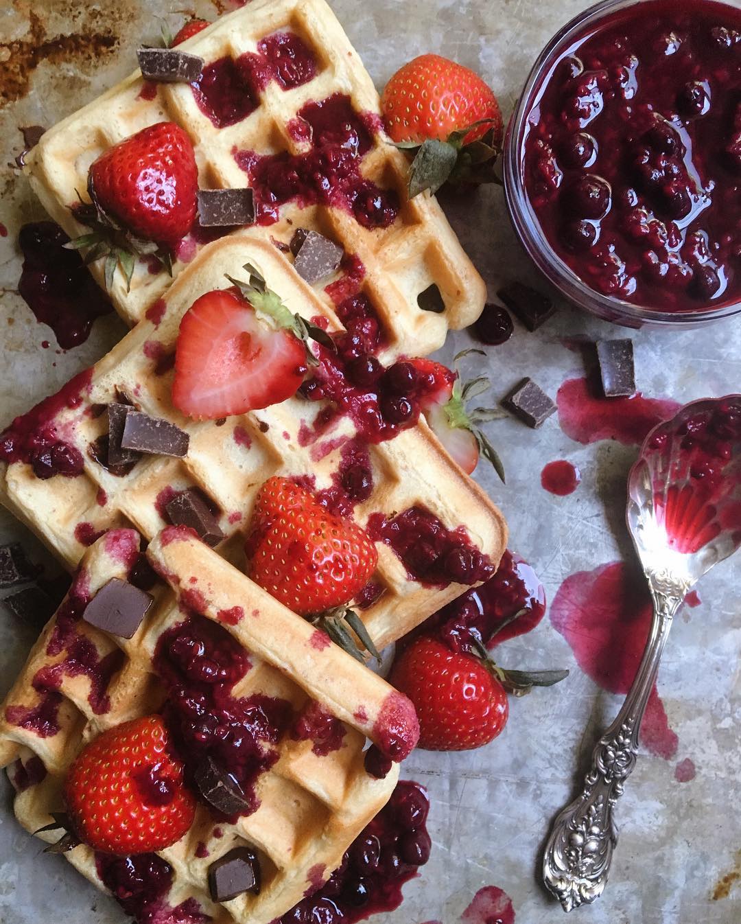 For this weeks #vegancookalong we are making recipes from the cookbook #americastestkitchen Vegan for Everybody!I made Belgian Waffles for breakfast with a simple berry compote, and of course some chocolate chunks on top. This waffle recipe was pretty simple, and unlike many other vegan waffle recipes, there were not too many ingredients ( less mess ?) A great recipe, the waffles were crispy on the outside and custardy on the inside. YUM! The compote recipe is from my go to lady @minimalistbaker