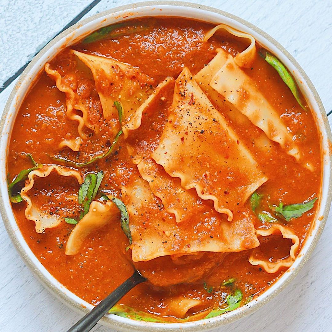Lentil Lasagna Noodle Soup A cozy & creamy tomato soup, with plenty of protein …