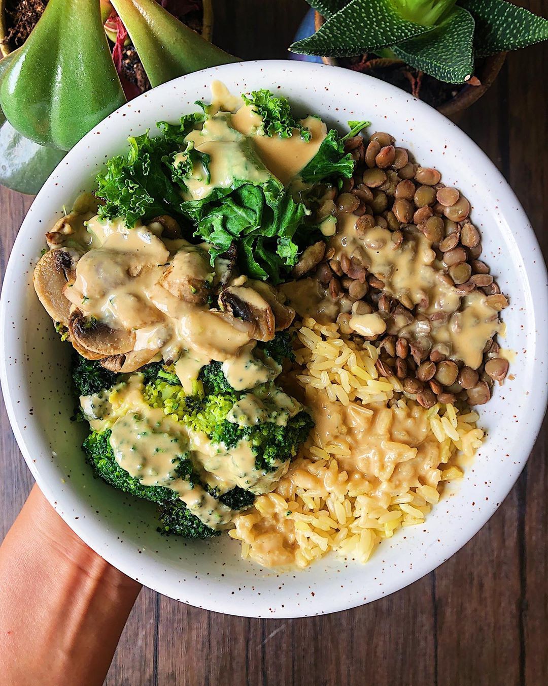 Cook brown rice and lentils as per package instructions (I use half veggie stock as a replacement for water to make them even tastier). Meanwhile, microwave or cook frozen broccoli and any other veggies of choice- I opted for kale and mushrooms. Once all components are done, combine and drizzle with my tahini lemon dressing, which can be found in my FREE recipe ebook on my page, under the ‘ebook’ highlight! ✨