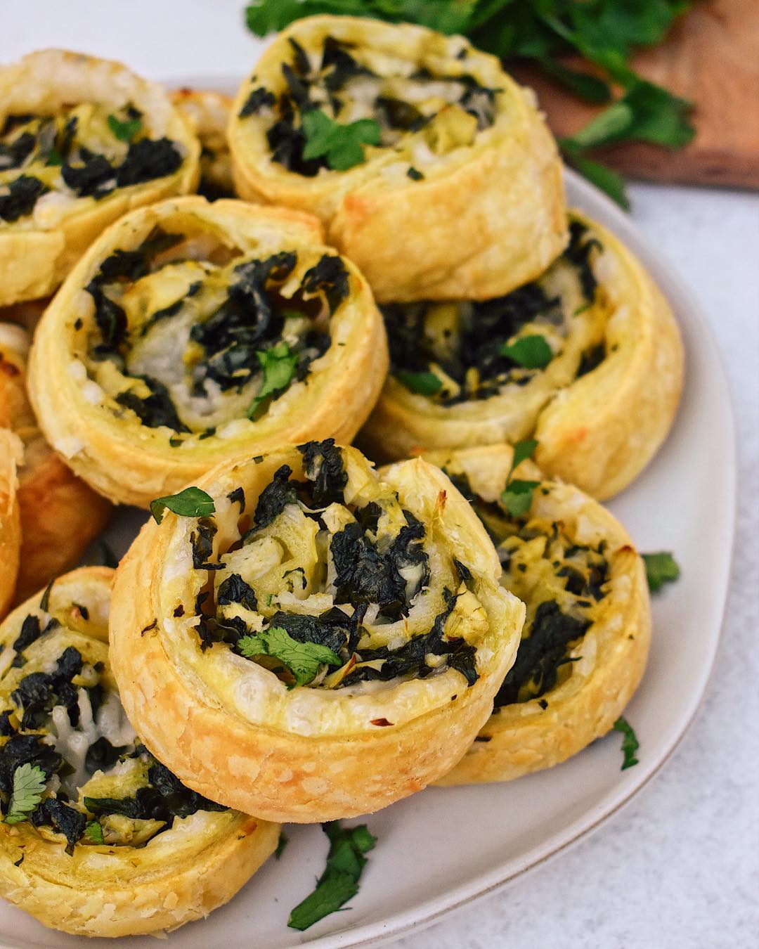 VEGAN SPINACH ARTICHOKE CHEESE PINWHEELS Crispy, flaky layers of puff pastry, st…